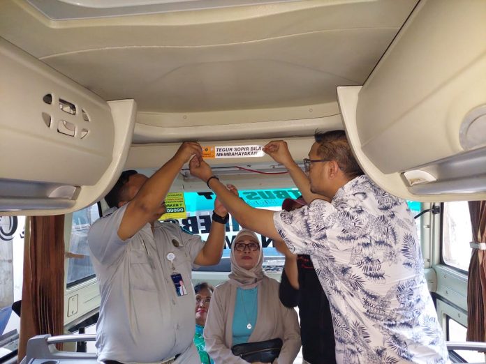 Imbauan bertuliskan “Tegur Sopir Bila Membahayakan” tersebut disematkan di seluruh armada bus PT Akas Mila Sejahtera guna menekan risiko kecelakaan lalu lintas yang disebabkan oleh human error.