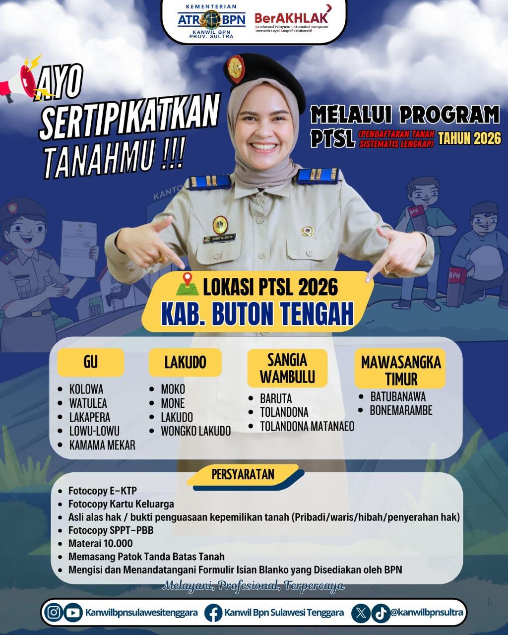 Buton Tengah, mandalapos.co.id – Kantor Pertanahan Kabupaten Buton Tengah resmi meluncurkan program Pendaftaran Tanah Sistematis Lengkap (PTSL) untuk tahun anggaran 2026.