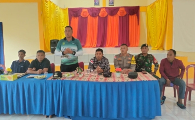 Camat Pulau Laut, Bambang Erawan, saat memimpin musyawarah antara nelayan Desa Tanjung Pala dan ABK kapal Mahkota Jaya II,