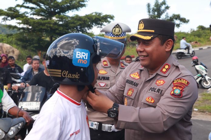 Tak hanya membagikan helm, Kapolres juga menyapa warga dengan ramah, mengingatkan pentingnya menjaga keselamatan di jalan raya.