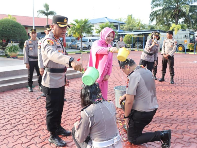 Pada akhir kegiatan, Kapolres bersama pejabat utama Polres Karimun dan seluruh peserta upacara memberikan ucapan selamat kepada personel yang naik pangkat, yang dilanjutkan dengan acara penyiraman air bunga.