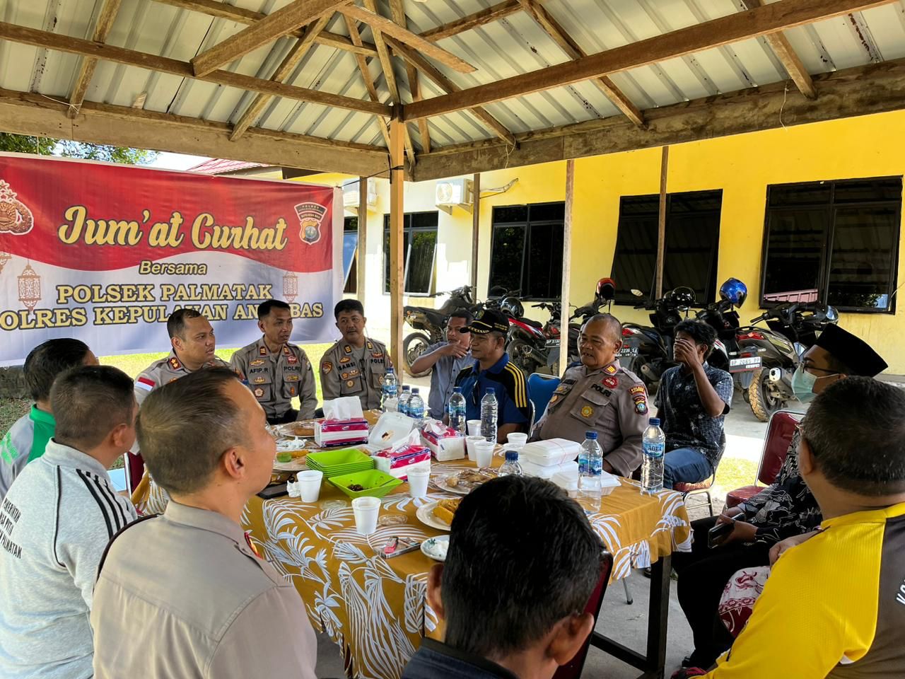Mandalapos.co.id, Anambas — Kapolres Kepulauan Anambas AKBP Apri Fajar didampingi Kapolsek Palmatak menggelar kegiatan Jumat Curhat di Kecamatan Palmatak, Kabupaten Kepulauan Anambas, Jumat (19/05/2023).