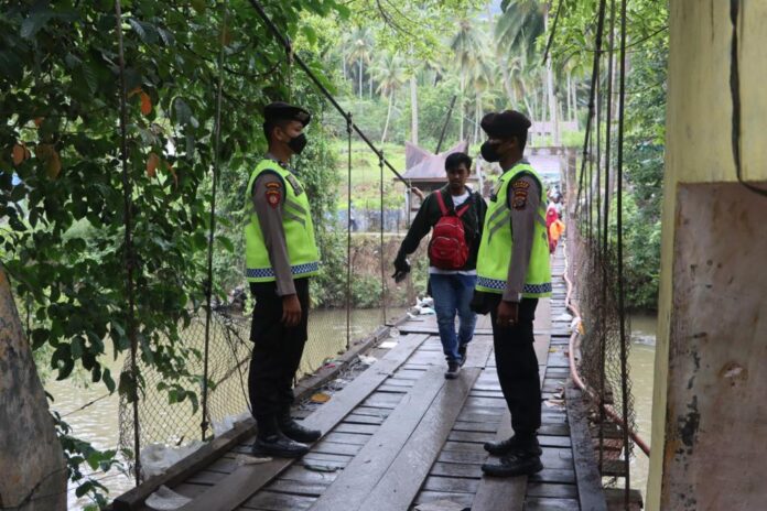 Mandalapos.co.id, Tapsel — Guna mengantisipasi terjadinya kemacetan, Kapolres Tapanuli Selatan (Tapsel) AKBP Roman S Elhaj, menugaskan kepada personel Samapta untuk selalu berjaga di depan Rambin (jembatan pintu masuk utama) Objek Wisata Aek Sijorni di Sayurmatinggi. Minimal, jarak antara personel satu dengan yang lain adalah 50 meter.