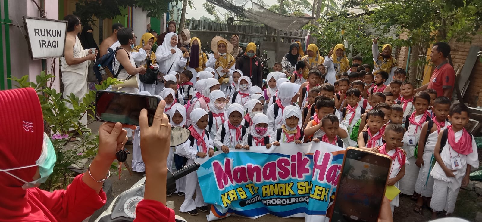 mandalapos.co.id, Probolinggo — Puluhan peserta didik di KB dan TK Anak Sholeh Kota Probolinggo, mengikuti kegiatan Manasik Haji, Sabtu (12/11) di miniatur ka’bah Jalan Raya Panglima Sudirman, Curahsawo, Kecamatan Gending.
