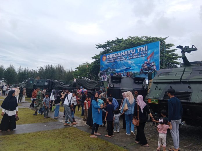 Natuna, Mandalapos.co.id – Kemeriahan peringatan HUT ke-80 TNI di Natuna, Minggu, 5 Oktober 2025, tidak berhenti di alun-alun saat upacara parade selesai. Begitu barisan pasukan dibubarkan, gelombang masyarakat yang sejak pagi memadati Alun-alun Pantai Piwang, Kota Ranai, berbondong-bondong bergerak menuju area pameran alat utama sistem persenjataan (alutsista).