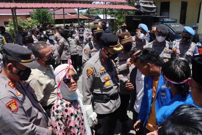 Mandalapos.co.id, Padang Lawas Utara — Berkat upaya pendekatan sisi humanisme, Kapolres Tapanuli Selatan (Tapsel), AKBP Roman S Elhaj, bersama personel gabungan dari Polri, Kodim 0212/TS, Yon C Sat Brimob Polda Sumut, dan Satpol PP, sukses mengawal dan mengamankan unjuk rasa (Unras) yang digelar Aliansi Mahasiswa Pemuda (Alpema) Padang Lawas Utara (Paluta) di depan Kantor DPRD setempat, Rabu (13/4/2022) pagi, hingga berakhir damai.