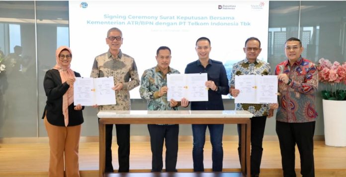 Jakarta, Mandalapos.co.id – Kementerian Agraria dan Tata Ruang/Badan Pertanahan Nasional (ATR/BPN) bersama PT Telkom Indonesia membentuk Satgas Akselerasi Legalisasi dan Penyelesaian Kasus Aset Tanah Telkom 2026. Pembentukan Satgas disahkan melalui penandatanganan Surat Keputusan Bersama dengan disaksikan oleh Wakil Menteri (Wamen) ATR/Wakil Kepala (Waka) BPN, Ossy Dermawan dan Direktur Utama PT Telkom Indonesia, Dian Siswarini pada Jumat (20/02/2026), di Gedung Telkom Hub, Jakarta.