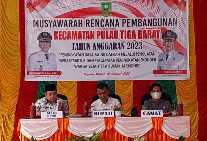 Mandalapos.co.id, Natuna – Bupati Natuna memboyong Ketua beserta Anggota DPRD Natuna dari Daerah Pemilihan II, untuk mengikuti kegiatan Musyawarah Perencanaan Pembangunan (Musrenbang) Kecamatan Pulau Tiga Barat, yang berlangsung di Desa Tanjung Kumbik Utara, Kamis (10/2/22).