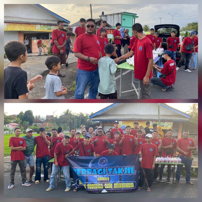 Tasikmalaya, Mandalapos.co.id –Komunitas sepak bola Kompas (Komando Anak Pasar Singaparna) membagikan 500 paket takjil kepada pengendara dan warga di jalan Raya Pemda Desa Singasari kecamatan Singaparna, Kabupaten Tasikmalaya , Selasa (11/3/2026).