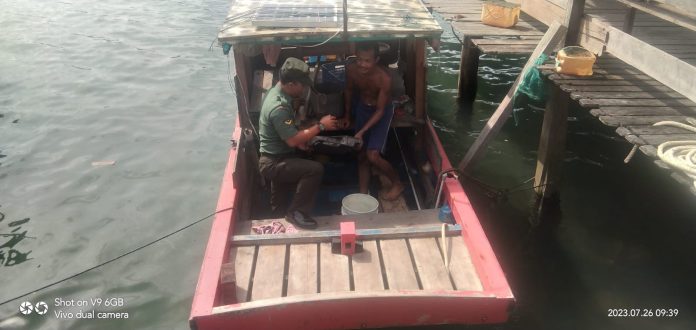 Mandalapos.co.id, Anambas — Anggota Koramil 02/Tarempa, Serda Ganda Fitrianto, melakukan komunikasi sosial (komsos) dengan seorang Nelayan bernama Andri di Desa Sri Tanjung, Kabupaten Kepulauan Anambas, Rabu, 26 Juli 2023.