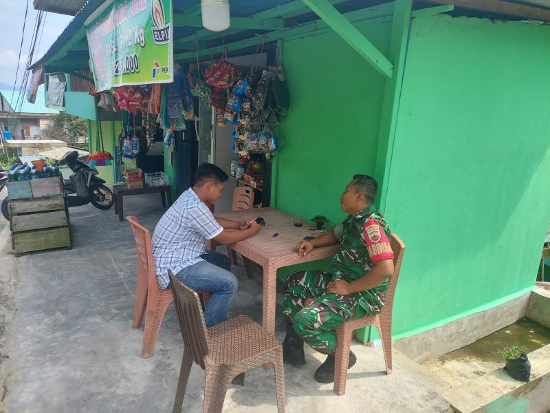 Mandalapos.co.id, Anambas — Babinsa Koramil 02/Tarempa, Sertu Sholihin, melakukan komunikasi sosial (Komsos) bersama pedagang sembako bernama Junaidi di wilayah Kelurahan Tarempa, Kecamatan Siantan, Kabupaten Kepulauan Anambas, Kamis (17/10/2024).