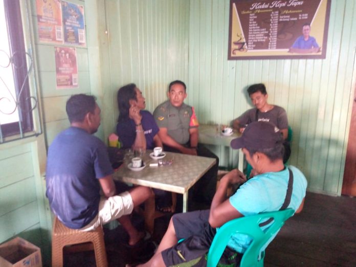 Mandalapos.co.id, Anambas — Serda Dandang Suharyadi melaksanakan komsos dengan warga Desa Lingai di Kedai Kopi Pak Tapa Desa Tarempa Barat, Kecamatan Siantan, Kabupaten Kepulauan Anambas, Rabu (24/7).