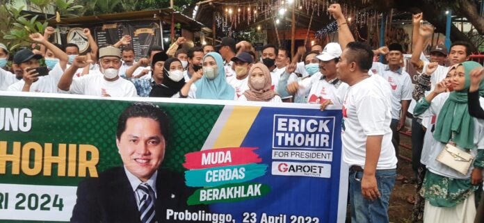 Mandalapos.co.id, Probolinggo — Komunitas Petani Probolinggo Bersatu, mendeklarasikan dukungan terhadap Menteri Badan Usaha Milik Negara (BUMN) Erick Thohir untuk maju sebagai calon presiden (Capres) di 2024. Kegiatan tersebut dipusatkan di Probolinggo dan digelar di Cafe Omah Ngopi di Kecamatan Gending Kabupaten Probolingg, Sabtu (23/4).