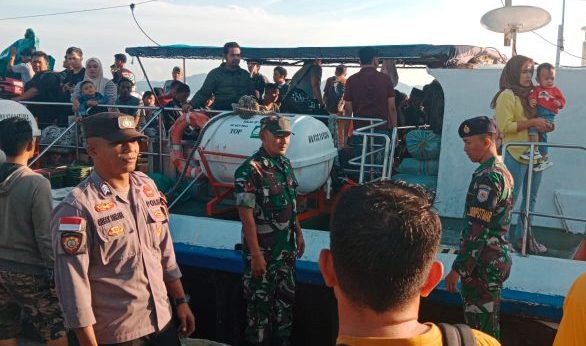 Mandalapos.co.id, Anambas — Anggota Koramil 02/Tarempa, Koptu Pardenande Saputra, melaksanakan pengamanan keberangkatan kapal Fery KM. VOC Batavia di pelabuhan Tarempa, Kecamatan Siantan, Kabupaten Kepulauan Anambas, Minggu (9/6/2024).