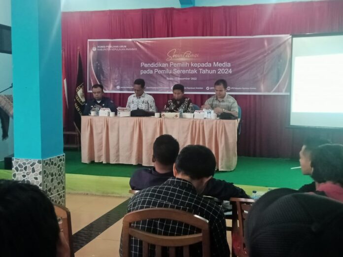 Mandalapos.co.id, Anambas — Komisi Pemilihan Umum Kabupaten Kepulauan Anambas, menggelar Sosialisasi Pendidikan Pemilih Kepada Media pada pemilu serentak tahun 2024, Sabtu (17/12) di Aula Pertemuan Siantan Nur.