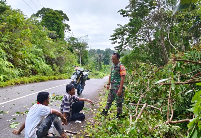 Mandalapos.co.id, Anambas — Anggota Koramil 02 Tarempa, Serda Ganda Fitrianto, melaksanakan komsos dengan masyarakat bernama Parno yang sedang membuka lahan, di Desa Temburun, Kabupaten Kepulauan Anambas, Minggu (7/1/2024).