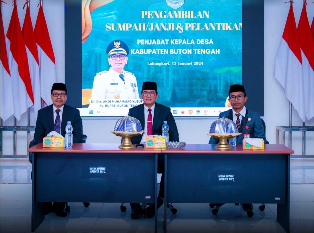 Mandalapos.co.id, Buton Tengah – Awal tahun 2024 menjadi momen tak terlupakan dan special bagi 13 orang Pj Kades di Kabupaten Buton Tengah. Dimana pada Senin (15/1/2024) Penjabat (Pj) Bupati Buton Tengah, Andi Muhammad Yusuf, melangsungkan pelantikan dan megambil sumpah para Pj kepala desa itu di Aula Kantor Bupati.