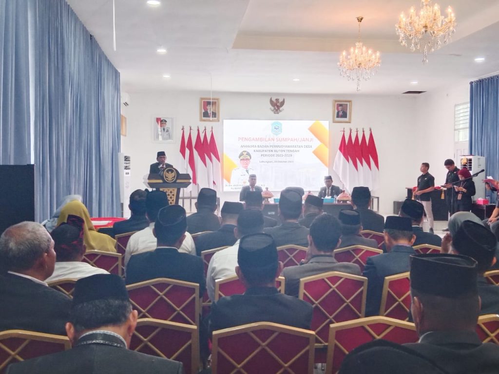Mandalapos.co.id, Buton Tengah – Penjabat (Pj) Bupati Buton Tengah (Buteng) Andi Muhammad Yusuf, secara resmi melakukan pelantikan dan penyumpahan Anggota Badan Permusyawaratan Desa (BPD) terpilih masa jabatan periode 2023-2029, bertempat di Aula Kantor Bupati, Sabtu (28/10/2023).