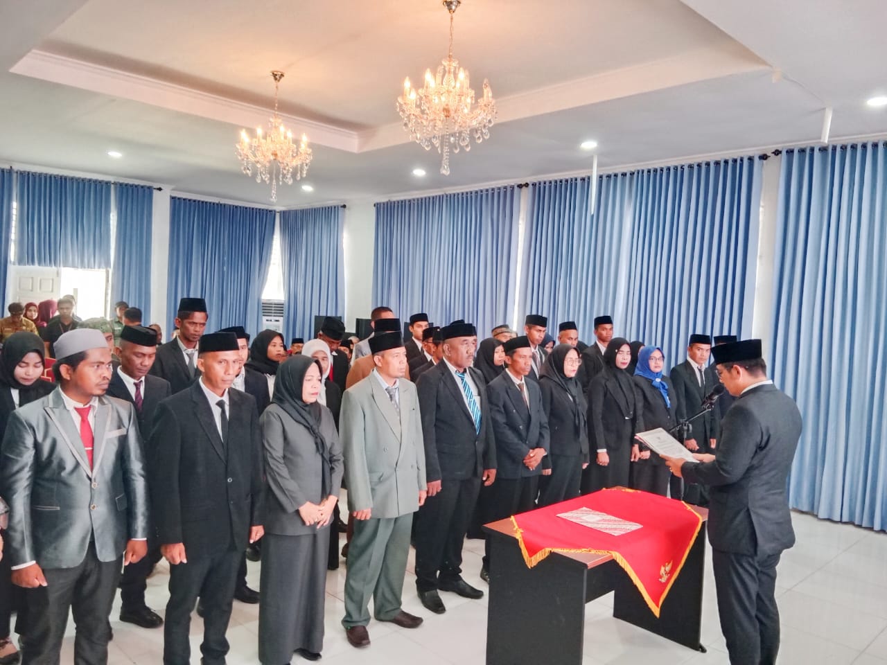 Pada kesempatan tersebut, Pj Bupati Andi Muhammad Yusuf, membacakan pengambilan sumpah 40 Anggota BPD Desa terpilih.