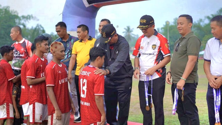 Natuna, mandalapos.co.id – Komandan Lanud Raden Sadjad (RSA) Marsekal Pertama TNI Onesmus Gede Rai Aryadi, S.E., M.M., M.Han., diwakili Kadister Lanud RSA Kolonel Adm Marshall, M.Si., dan Kadispers Letkol Adm Yuli Afrizan, S.Sos., menghadiri final Turnamen Sepak Bola Bupati Natuna Cup 2025 di Lapangan Tunas Harapan Baru, Kecamatan Bunguran Timur, Kabupaten Natuna, Provinsi Kepri, Sabtu (8/11/2025).