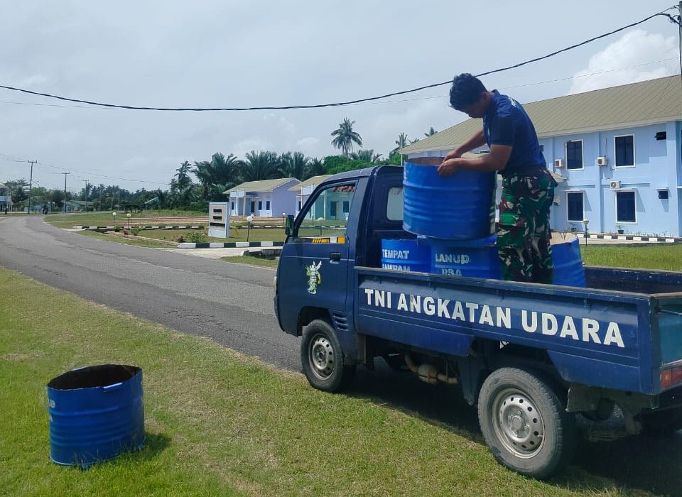 Lanud RSA Natuna Wujudkan Misi Bersih dari Sampah Plastik, Puluhan Tong Sampah Dipasang di Jalan Adi Sucipto