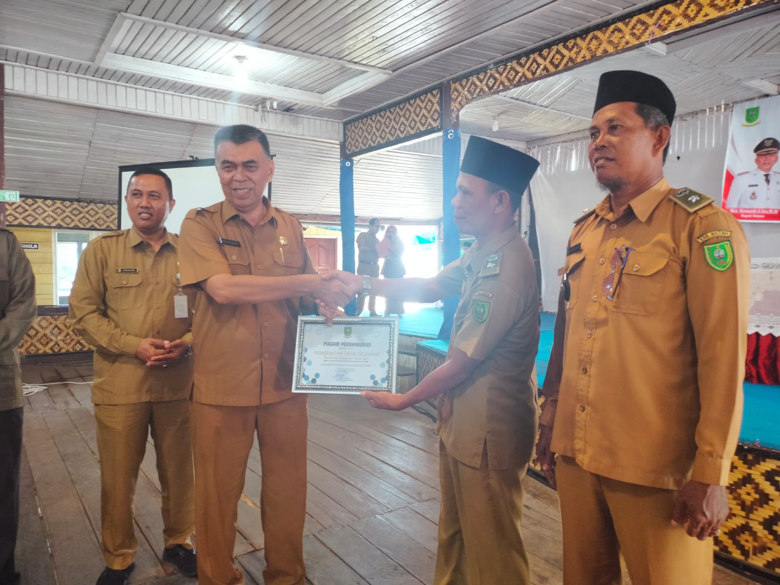 Di akhir acara, Bupati Natuna juga berkesempatan menyerahkan penghargaan kepada 2 desa terbaik dalam penyempaian laporan keuangan desa, yakni Desa Selemam dan Sepempang.