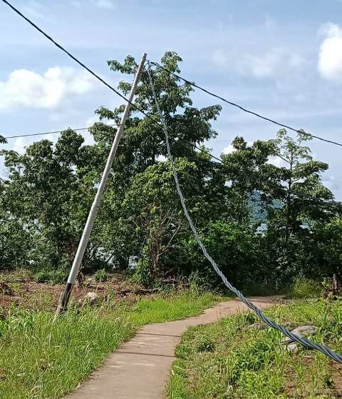 Dari pantauan mandalapos, juga terdapat tiang listrik milik PLN yang sudah hampir roboh ke arah jalan. Seperti terlihat di jalan akses menuju ke Sekolah SMPN 3 Telaga di Teluk Kandang. Para guru dan masyarakat pun dibuat was-was dengan keadaan tiang miring tersebut.