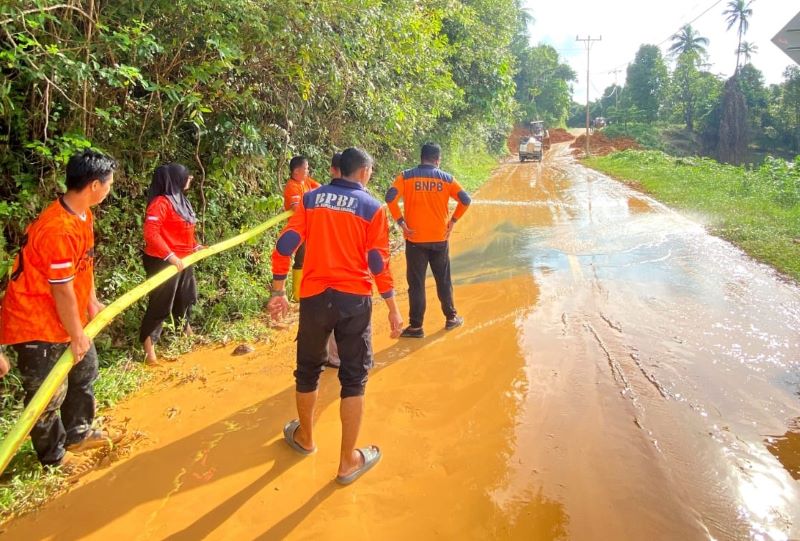 Longsor Ringan Tutupi Badan Jalan Menuju Desa Matak, BPBD Pos Palmatak Lakukan Pembersihan