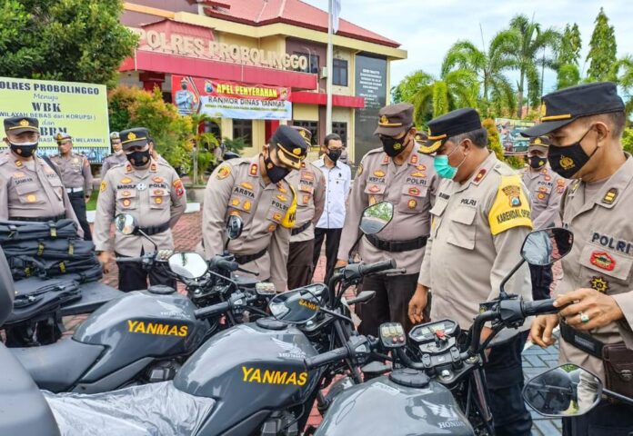 Mandalapos.co.id, Probolinggo – Demi menunjang kinerja Polri melaksanakan tugas sebagai pelindung, pengayom dan pelayan masyarakat yang prediktif, responsibilitas, transparansi dan berkeadilan. Kapolres Probolinggo, AKBP Teuku Arsya Khadafi menyerahkan kendaraan bermotor dinas berupa R-2 (roda dua) kepada anggota Sentra Pelayanan Kepolisian Terpadu (SPKT) dan Polsek jajaran Polres Probolinggo.