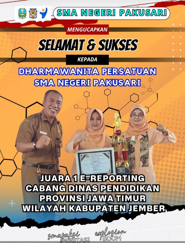 Dalam rangka memperingati HUT Dharma Wanita Persatuan yang ke 24, Cabang Dinas Pendidikan Provinsi Jawa Timur wilayah Jember Lumajang, mengadakan berbagai kegiatan yang dimana dalam bidang lomba E-Reporting, guru dari SMAN Pakusari berhasil meraih juara 1.
