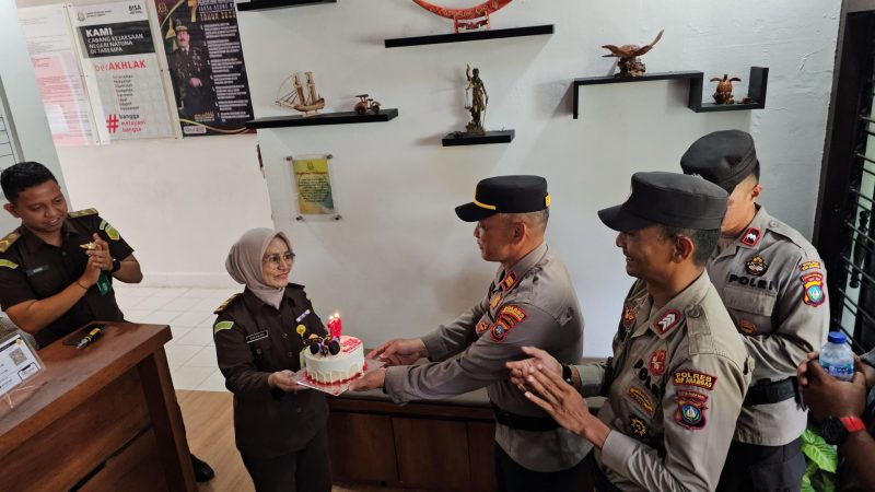 Mandalapos.co.id, Anambas – Kapolres Kepulauan Anambas, AKBP Raden Ricky Pratidiningrat, melalui Kapolsek Siantan, IPTU Sutomo, memberikan kejutan dengan membawa kue ulang tahun ke Kantor Cabang Kejaksaan Negeri (Cabjari) Natuna di Tarempa, yang sedang memperingati HUT Kejaksaan Republik Indonesia ke -79, Rabu (03/9/2024).
