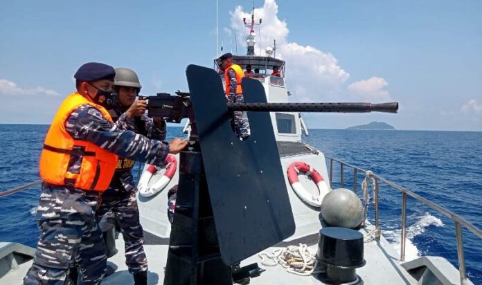 Mandalapos.co.id, Anambas — Pangkalan TNI AL (Lanal) Tarempa melaksanakan rangkaian latihan menembak sasaran atas air, Kamis (14/4) di Perairan Kepulauan Anambas. Kapal Angkatan Laut (KAL) Pulau Siantan-I.4.52 dan KAL Baruk-I.4.28 yang merupakan unsur gelar Lanal Tarempa, dilibatkan dalam latihan tersebut.