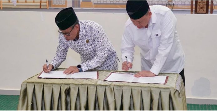 Palu, Mandalapos.co.id – Menteri Agraria dan Tata Ruang/Kepala Badan Pertanahan Nasional (ATR/BPN), Nusron Wahid bersama Rektor Universitas Islam Negeri (UIN) Datokarama Palu, Lukman S. Thahir, menandatangani Nota Kesepahaman/MoU terkait pelaksanaan Kuliah Kerja Nyata (KKN) Tematik di bidang pertanahan pada Rabu (01/04/2026). Kerja sama ini menjadi langkah konkret mendorong keterlibatan mahasiswa untuk membantu menyelesaikan legalisasi tanah wakaf.