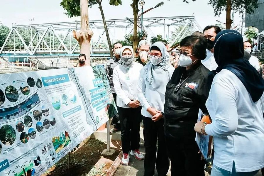 Mandalapos.co.id, Indramayu – Menteri Lingkungan Hidup dan Kehutanan Republik Indonesia (LHK-RI) Siti Nurbaya meresmikan Ekoriparian Tjimanoek yang berlokasi di Bantaran Sungai Cimanuk Lama Kabupaten Indramayu, Senin (13/12/21)
