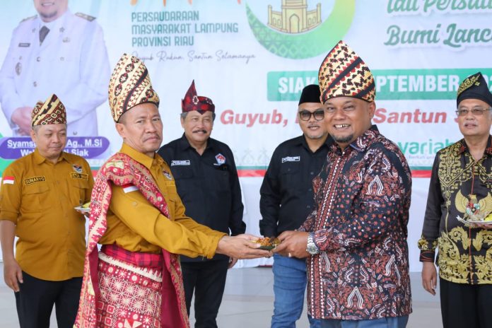 Dalam sambutannya, Syamsurizal memberikan apresiasi atas eksistensi dan kontribusi warga Lampung di Kabupaten Siak. Ia juga menyampaikan pesan Bupati agar paguyuban tetap menjaga kerukunan, berkontribusi dalam pembangunan, serta menggerakkan ketahanan pangan dengan memanfaatkan lahan yang ada untuk menekan laju inflasi bahan pangan.
