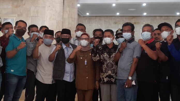 Mandalapos.co.id, Indramayu- Puluhan Kepala Desa terpilih hasil Pemilihan Kuwu (Pilwu) serentak di Kabupaten Indramayu 2 Juni 2021 lalu, mendatangi Kantor Bupati Indramayu, Selasa, (10/8/2021).
