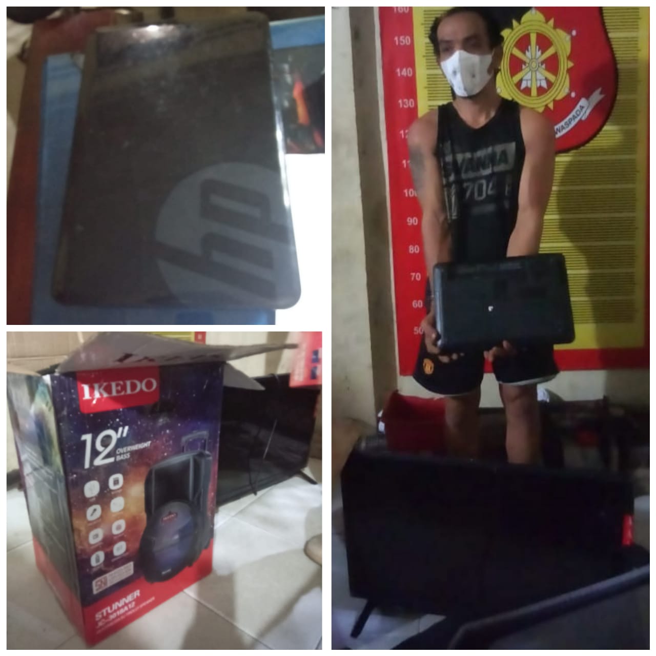 “Tak hanya itu, barang-barang berupa satu unit Laptop, satu unit televisi, satu unit speaker 12 inch, satu unit mesin gerinda, satu unit mesin bor, dua unit telepon seluler, dan uang tunai Rp500 ribu, milik korban juga raib dari tempat usahanya,” terang Kasat.