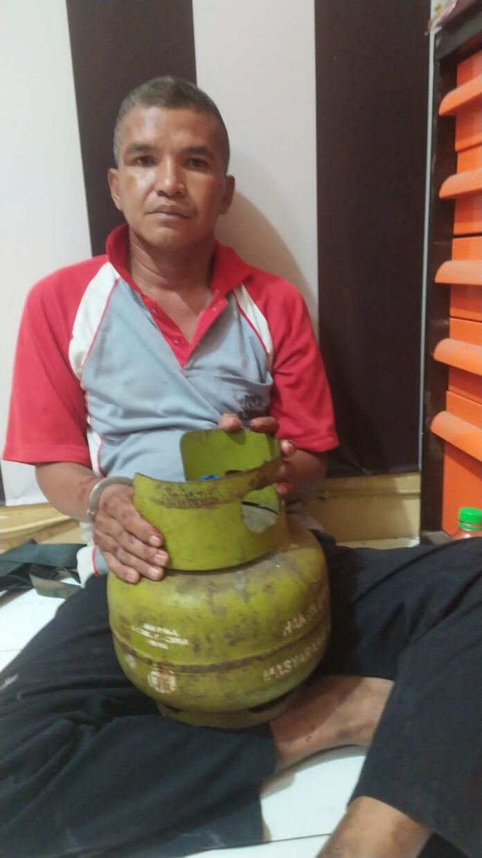Probolinggo – Seorang tukang ojek terciduk mencuri tabung gas di sebuah warung di Jalan Serayu, Kecamatan Kedopok, Kota Probolinggo, Sabtu (23/1).