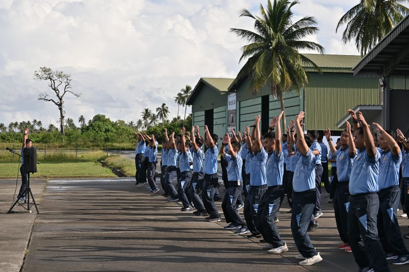 Seluruh personel mengikuti lari pagi mengelilingi Ksatrian Lanud RSA, didahului pemanasan terstruktur untuk memastikan keamanan dan kesiapan fisik.