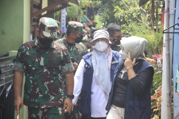 Mandalapos.co.id, Bekasi – Sekretaris Daerah Kota Bekasi Reny Hendrawati bersama Komandan Kodim 0507/Bekasi, Kolonel Arm Iwan Aprianto, mendampingi Pangdam Jayakarta Mayjend TNI Untung Budiharto dalam peninjauan langsung vaksinasi lansia di Kampung Rawa Bambu RT 004 RW 001 Kelurahan Kalibaru, Kecamatan Medan Satria, Kota Bekasi, Selasa (15/2).