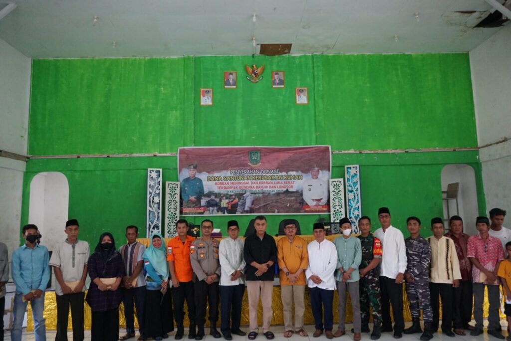 Adapun donasi yang akan disalurkan yaitu Dana Santunan Duka Cita untuk 54 korban meninggal dunia sebesar Rp10 juta per orang dengan jumlah keseluruhan Rp540 juta, korban meninggal tertimpa pohon kelapa sebesar Rp10 juta. Kemudian bantuan rumah terdampak bencana dengan klasifikasi rusak berat dengan jumlah 28 rumah mendapatkan bantuan sebesar Rp15 juta dengan total keseluruhan Rp420 juta, rusak sedang berjumlah 9 rumah dengan bantuan Rp12,5 juta dengan total keseluruhan Rp112,5 juta , rusak ringan 8 rumah dengan bantuan sebesar Rp11 juta dengan total keseluruhan Rp88 juta, rumah tidak layak huni sebanyak 33 rumah dengan jumlah bantuan sebesar Rp10 juta dengan total keseluruhan Rp330 juta. Kemudian dana santunan pasien ada 4 orang dimana Nafisa dan Romi diberikan bantuan sebesar masing-masing Rp10 juta, sementara Apsah dan Desi Indrawati masing-masing Rp8 juta.