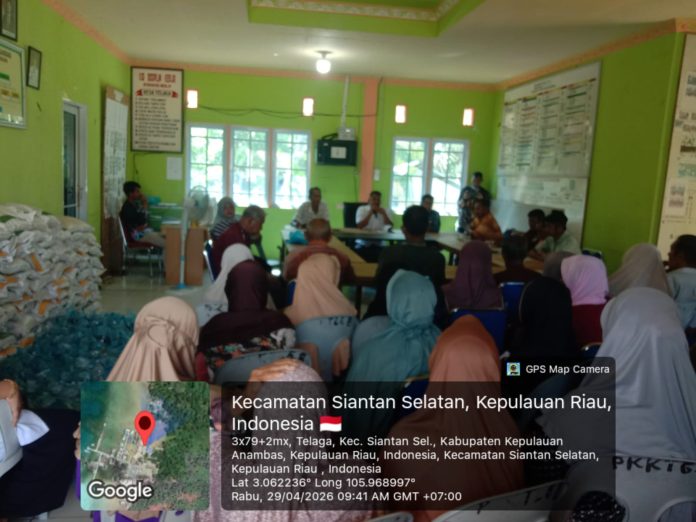 Anambas, mandalapos.co.id – Pemerintah Desa Telaga Kecamatan Siantan Selatan Kabupaten Kepulauan Anambas Rabu ( 29/4/2026 ) . Menyalurkan bantuan sembako ketahanan pangan dari pemerintah pusat kepada masyarakat, bertempat di kantor desa dengan melibatkan pihak kantor pos dalam proses distribusinya.