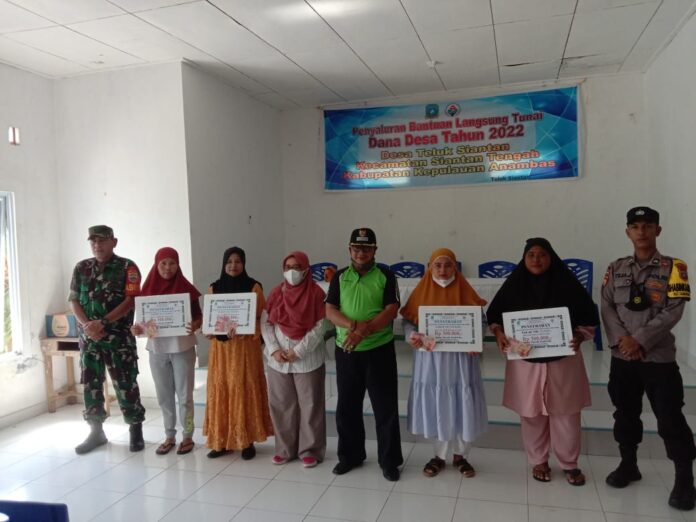 Mandalapos.co.id, Anambas — Pemerintah Desa Teluk Siantan menyalurkan Bantuan Langsung Tunai Dana Desa (BLT DD) triwulan 3 periode bulan Juli 2022, Sabtu (23/7) di balai desa setempat.