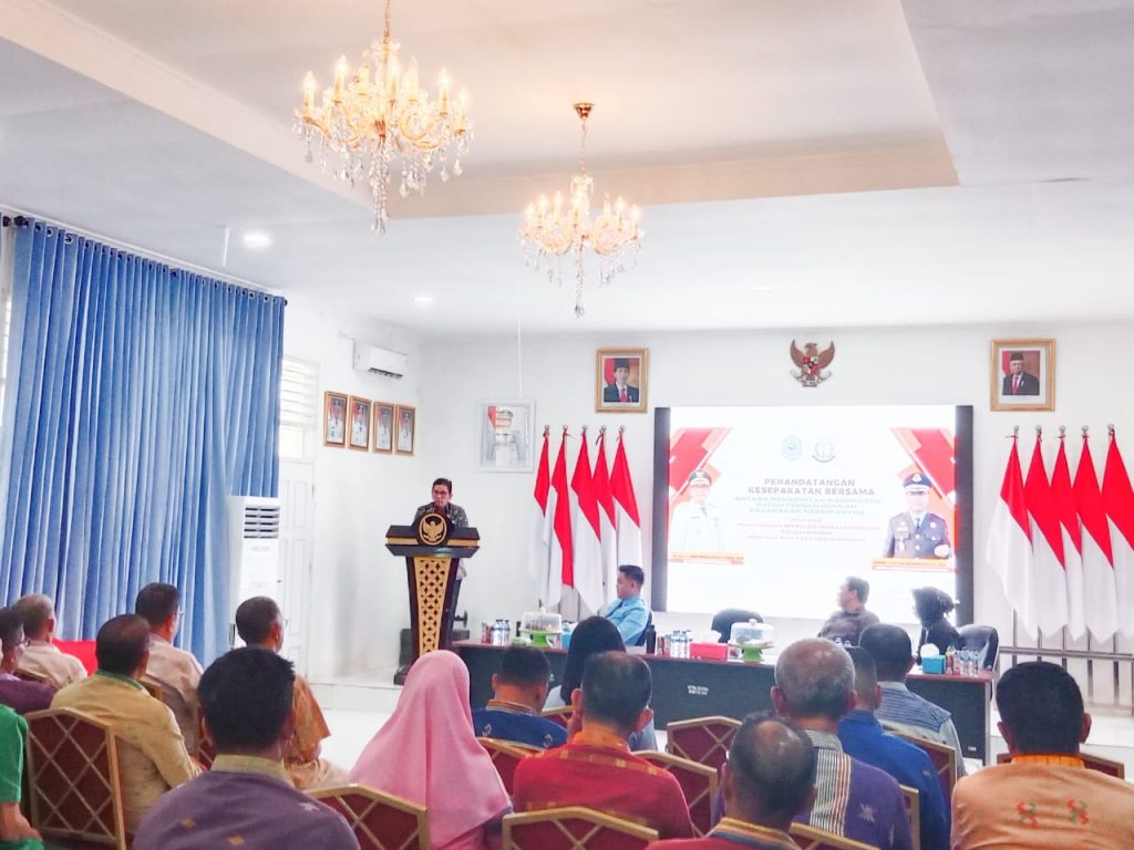 Penandatangan Memorandum of Understanding atau MoU kesepakatan bersama dilakukan oleh Penjabat (Pj) Bupati Buton Tengah, Andi Muhammad Yusuf dan Kepala Kejari Buton, Ledrik Victor Mesak Takaendengan, disaksikan langsung para staf ahli, asisten, kepala bagian sekretaris daerah, dan sejumlah kepala OPD, bertempat di Aula Kantor Bupati, Kamis (19/10/2023).