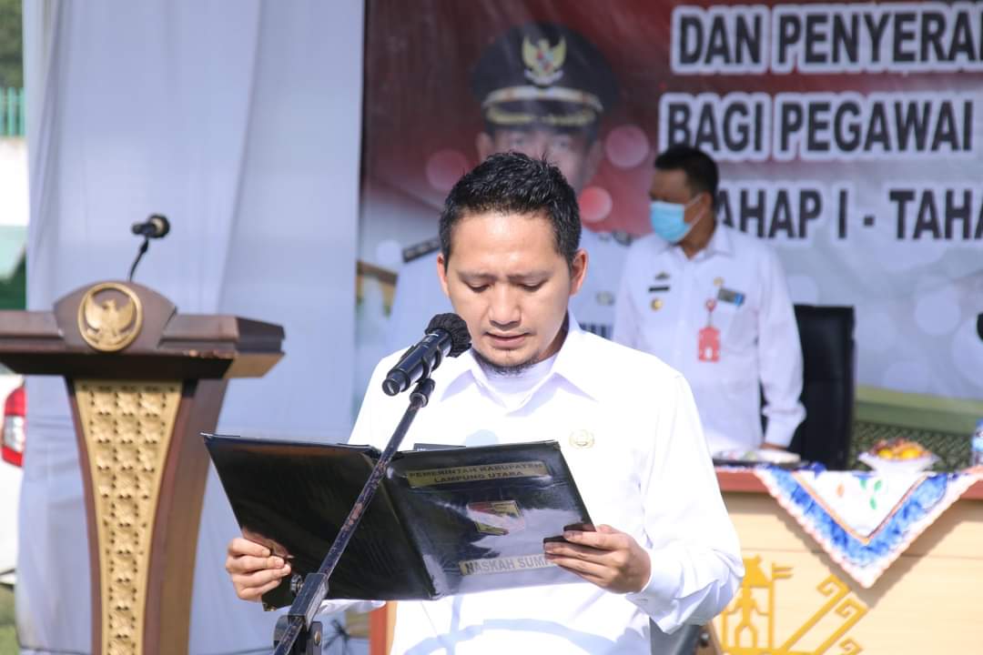 Sementara, Wakil Bupati Lampung Utara Ardian Saputra, membacakan pengantar sumpah dilanjutkan dengan pembacaan sumpah, sambil diikuti oleh seluruh PPPK Lampura anggaran tahun 2021.