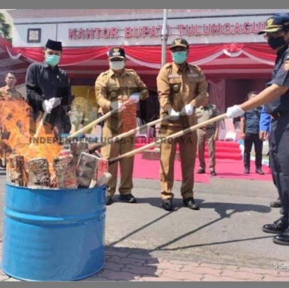 “Ini adalah salah satu cara yang kita ambil, untuk menunjukkan bahwa pemerintah benar-benar serius dalam memerangi peredaran rokok ilegal,” ujar Bupati Tulungagung, Maryoto Birowo.