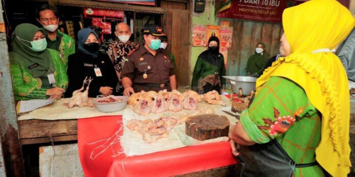 Sekretaris Daerah Ninik Ira Wibawati tampak memimpin peninjauan bersama dengan jajaran forkopimda dan anggota Tim Pengendali Inflasi Daerah (TPID) di Pasar Baru.