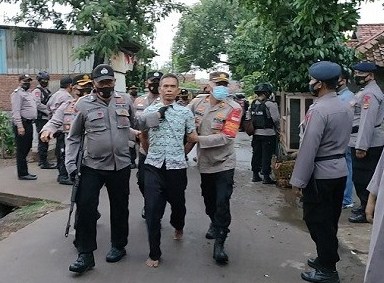 T ditangkap atas dugaan keterlibatan pembantaian dua petani penggarap tebu di Desa Sukamulya Kecamatan Tukdana Kabupaten Indramayu, Senin 4 Oktober 2021.