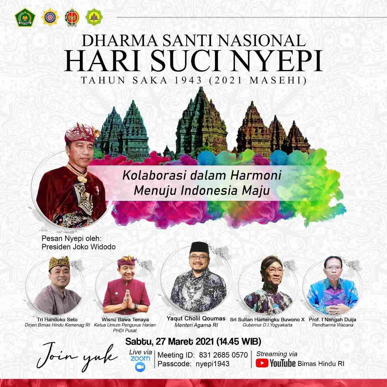 Jangan lupa saksikan Dharmasanti Nasional tanggal 27 Maret 2021 via zoom maupun youtube Bimas Hindu RI.