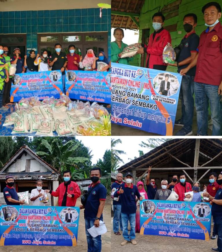Dikatakan Ketua IWO Tulang Bawang Ade Setiawan, kegiatan tersebut bersama seluruh jajaran anggota pengurus IWO Tulangbawang. Bantuan ratusan Bansos ini berasal dari berbagai sumber donatur baik individu maupun institusi dan sebagainya.